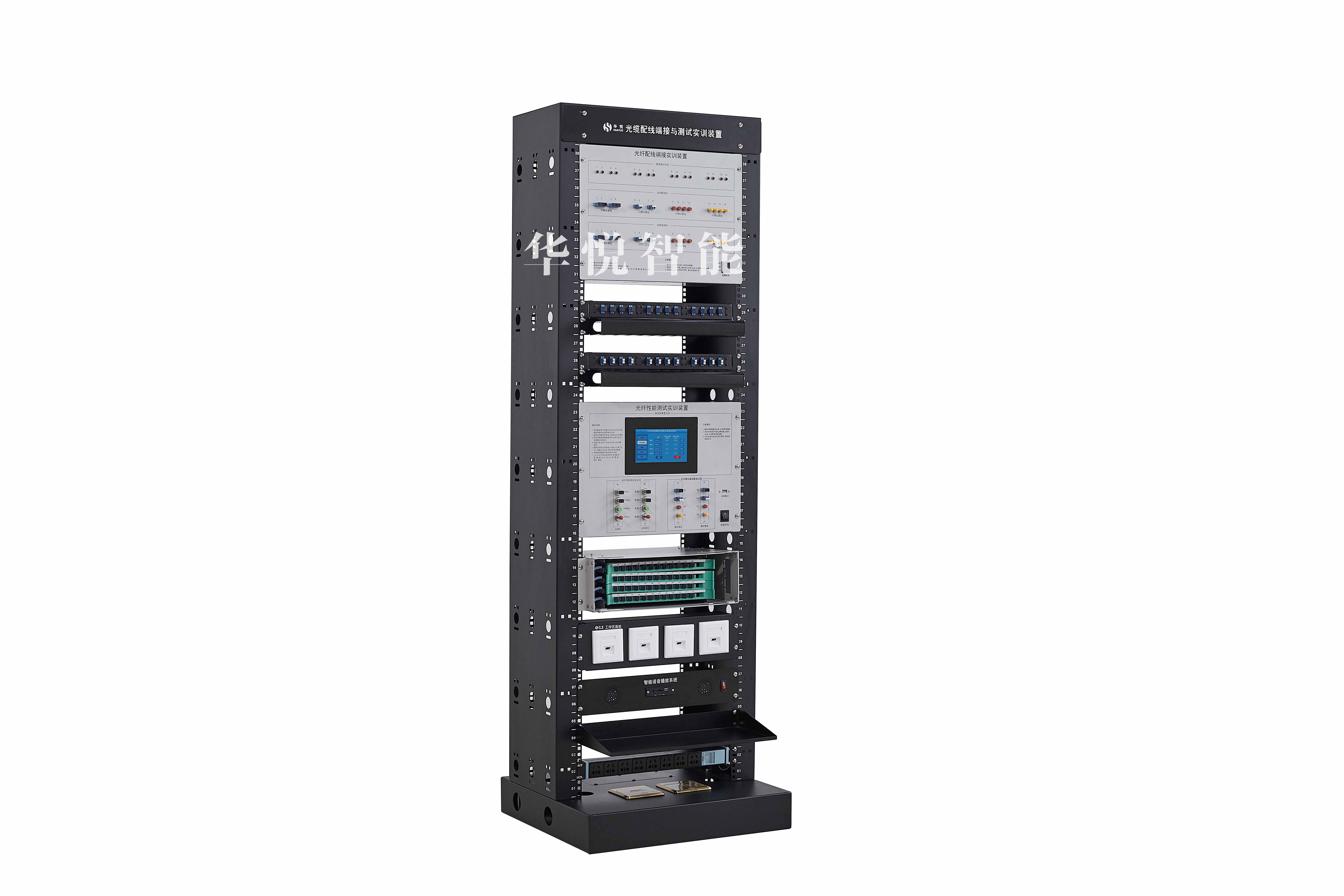 4、裝置側(cè)板預(yù)留各種孔徑安裝孔,可以進行網(wǎng)絡(luò)設(shè)備、監(jiān)控設(shè)備、面板底盒配件的安裝與調(diào)試。